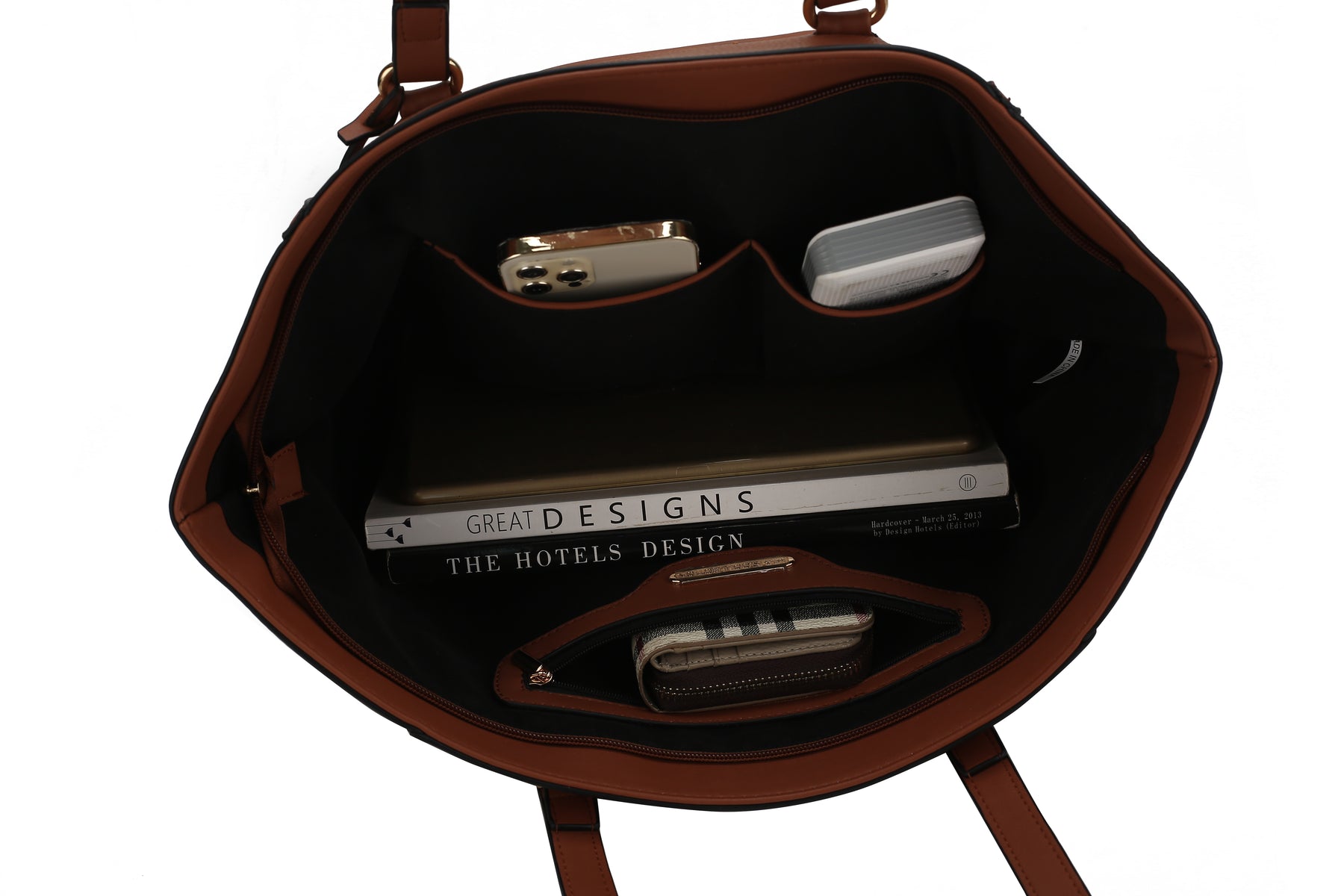 POCKETS: Interior features a wall zip pocket and two slip pockets. The exterior features a zippered back pocket, and a front zippered pocket